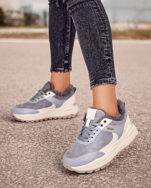 • Pantofi sport tip sneaker izolat pentru femei, cu talpă mai groasă. Partea superioară cu șireturi din nubuc ecologic combinat cu piele ecologică. Interior din blană moale. Super accesoriu pentru ținutele tale casual de iarnă!