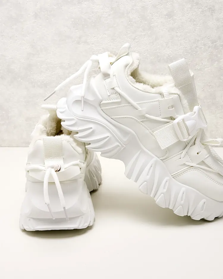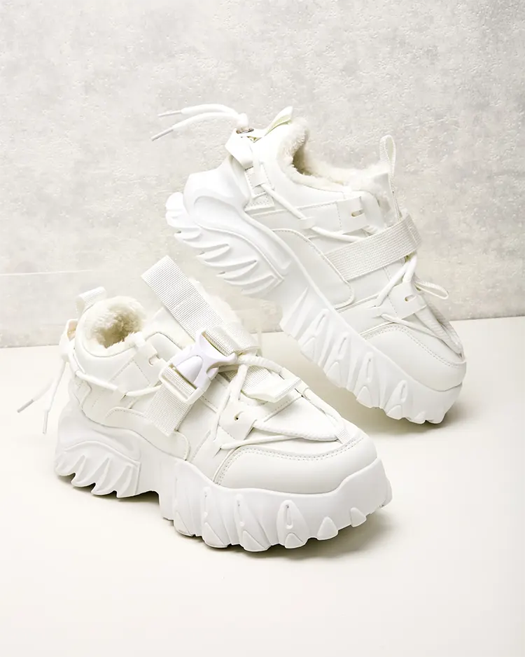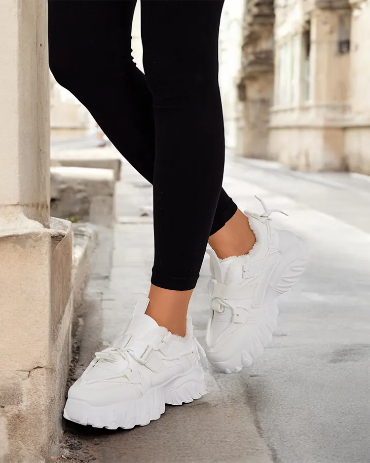 - Adidași sport pentru femei pe o talpă mai groasă. Partea superioară cu șiret, din piele ecologică. Interior complet izolat cu blană. Ideali pentru ținutele sport!