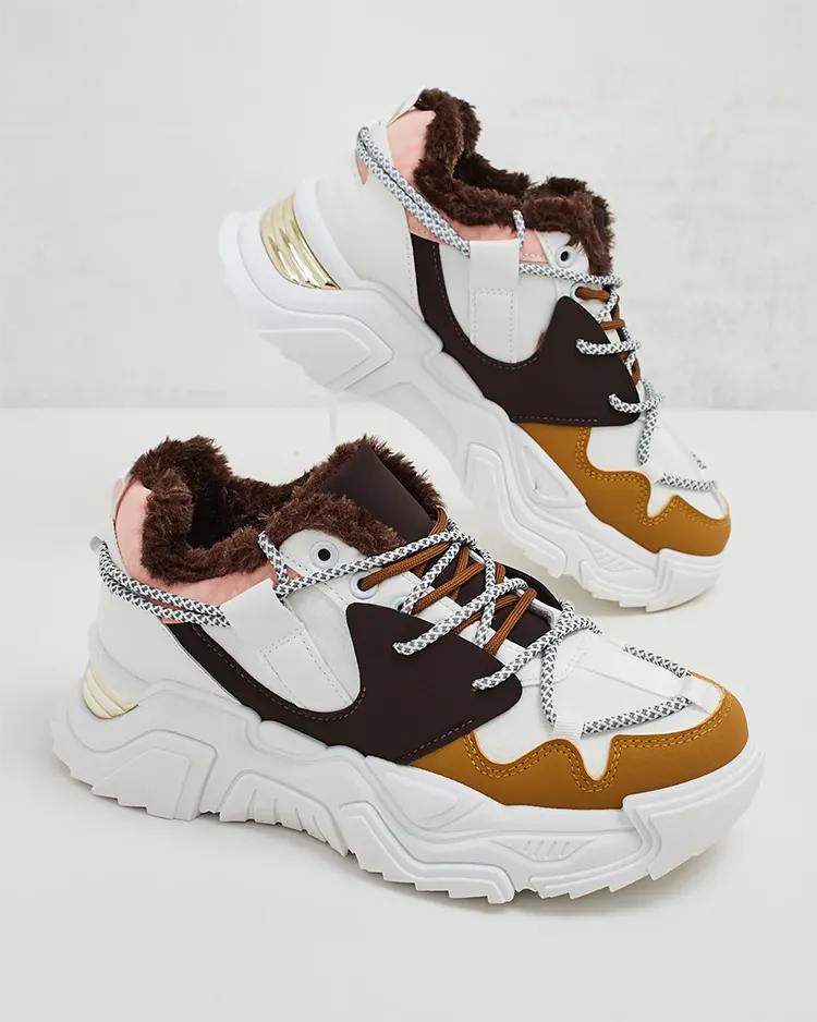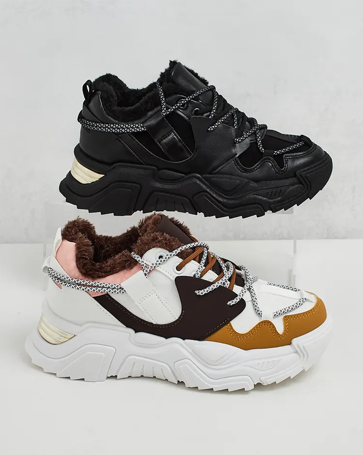 - Adidași sport pentru femei pe o talpă mai groasă. Partea superioară cu șiret, din piele ecologică. Interior complet izolat cu blană. Ideali pentru ținutele sport!