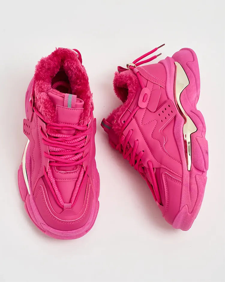 - Adidași sport pentru femei pe o talpă mai groasă. Partea superioară cu șiret, confecționată din piele ecologică. Interior complet izolat cu blană. Ideali pentru ținutele sport!