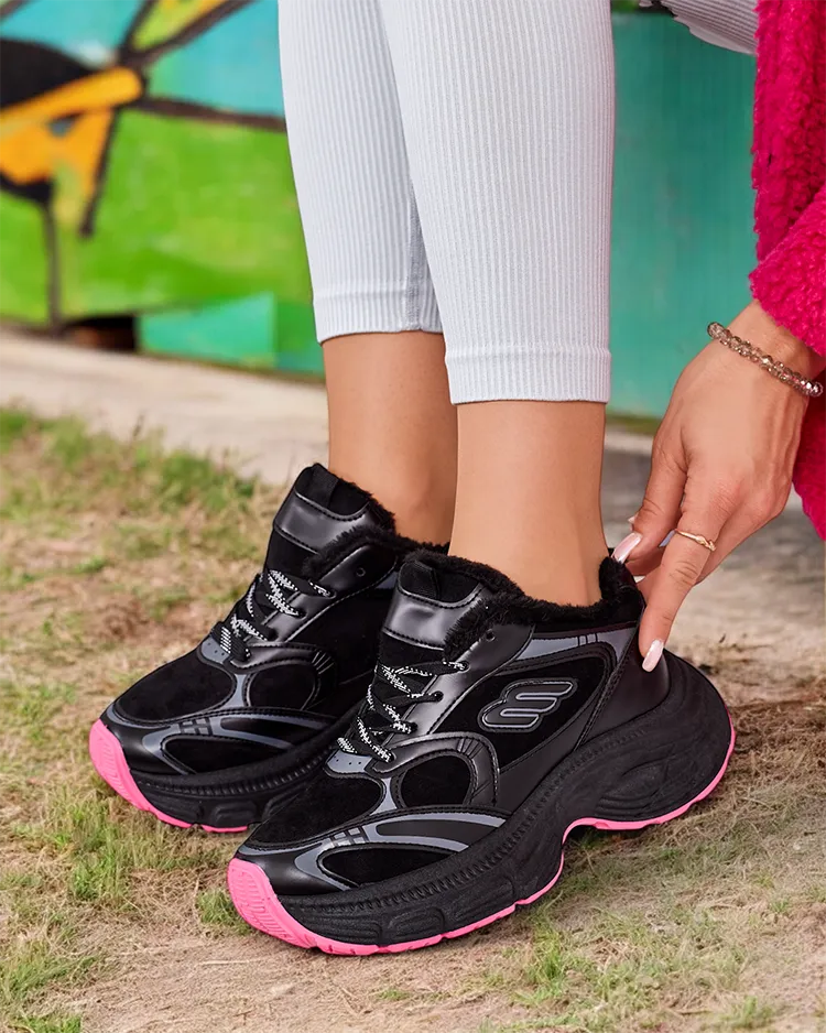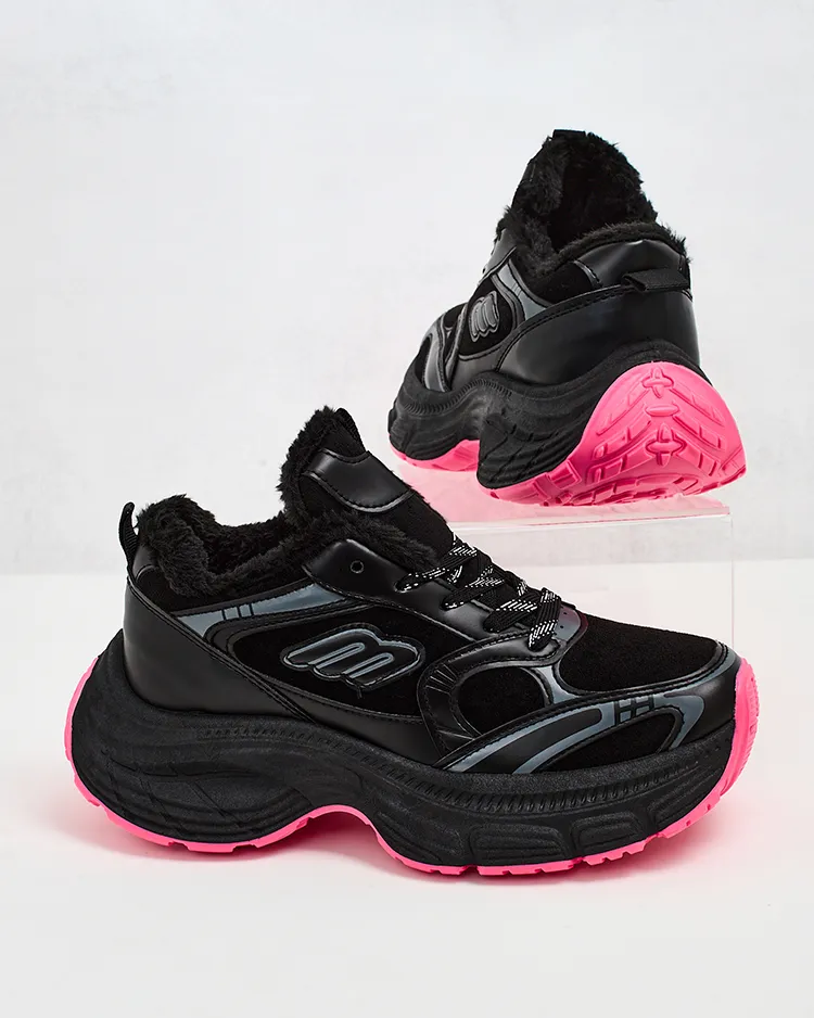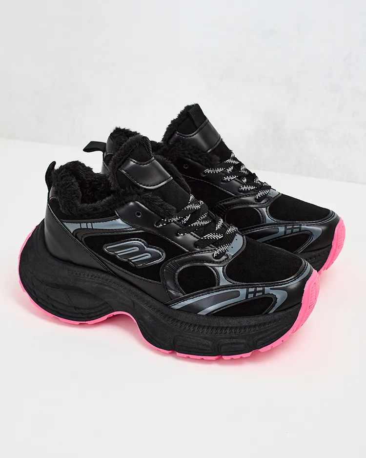 - Pantofi sport izolați cu platformă pentru femei. Tupeu cu șireturi realizat dintr-o combinație de piele ecologică și piele de căprioară ecologică. Blană moale în interior. Super accesoriu pentru ținutele tale casual de iarnă!