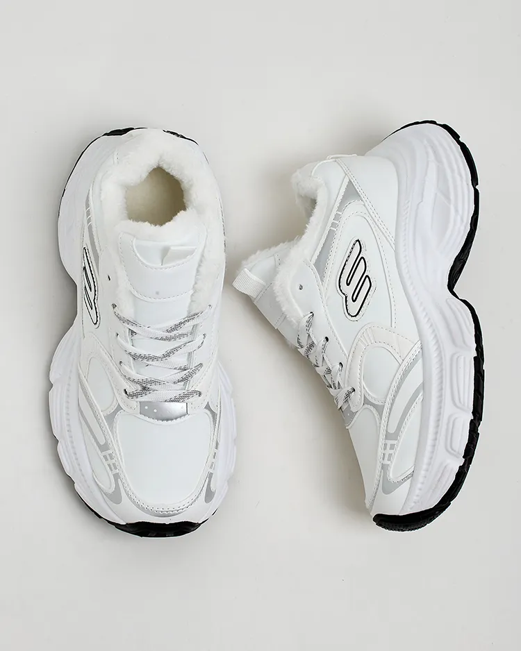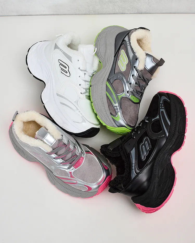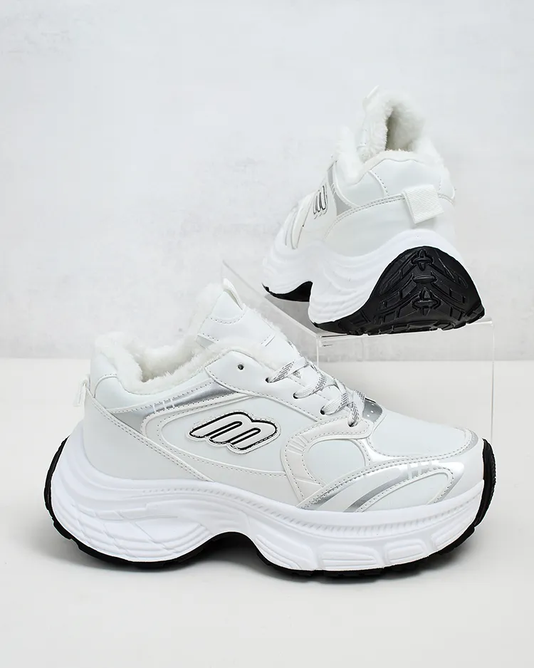 - Pantofi sport izolați cu platformă pentru femei. Tupeu cu șireturi realizat dintr-o combinație de piele ecologică și piele de căprioară ecologică. Interior din blană moale. Super accesoriu pentru ținutele tale casual de iarnă!