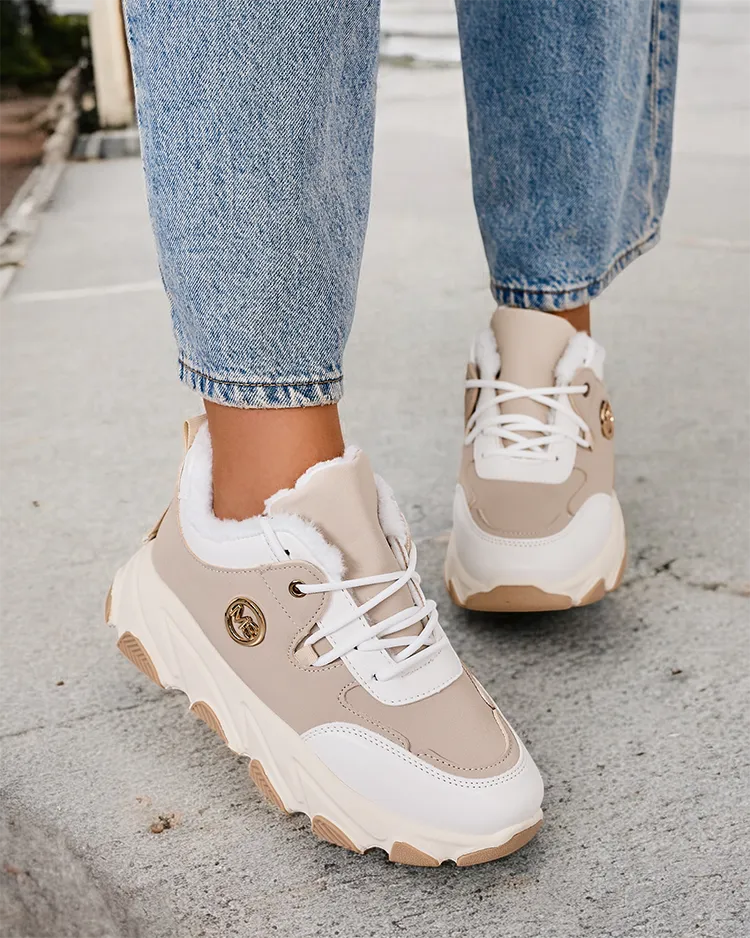 • Pantofi sport izolați pentru femei cu talpă mai groasă. Partea superioară cu șireturi din piele ecologică. Blană moale în interior. Super accesoriu pentru ținutele tale casual de iarnă!