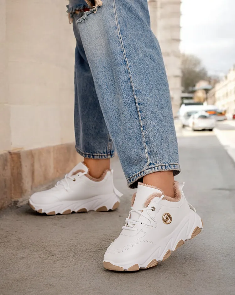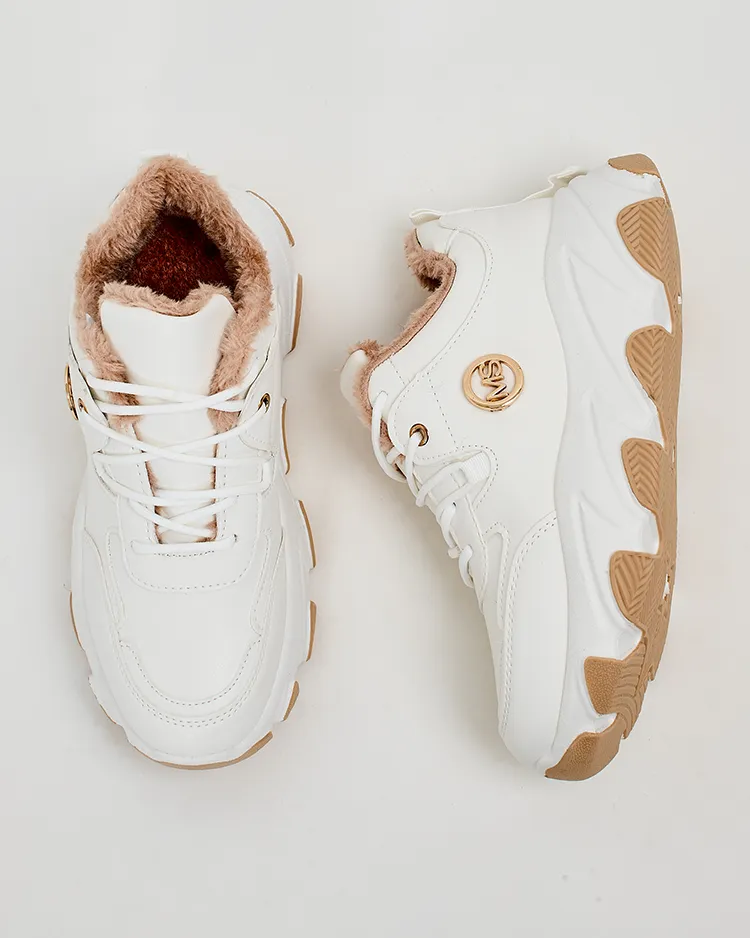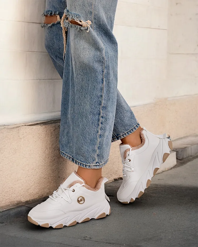 - Pantofi sport izolați pentru femei cu talpă mai groasă. Partea superioară dantelată din piele ecologică. Blana moale în interior. Super accesoriu pentru ținutele tale casual de iarnă!