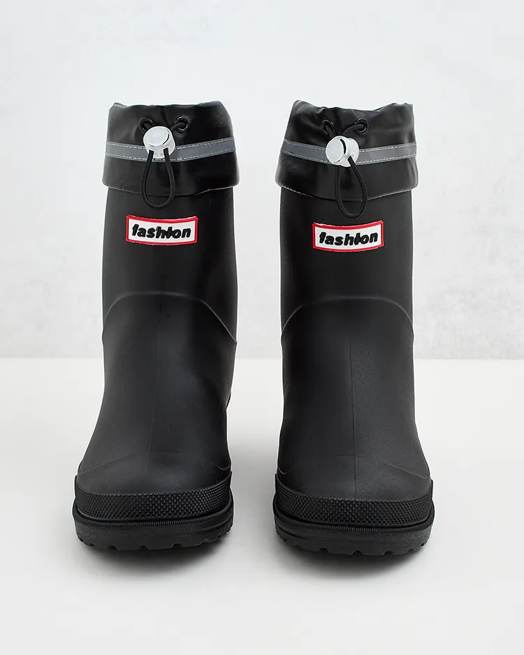 - Botine wellingtons clasice pentru femei cu toc plat din material cauciucat. Interiorul tălpii interioare realizat din material textil. Perfect pentru zilele ploioase de toamnă!