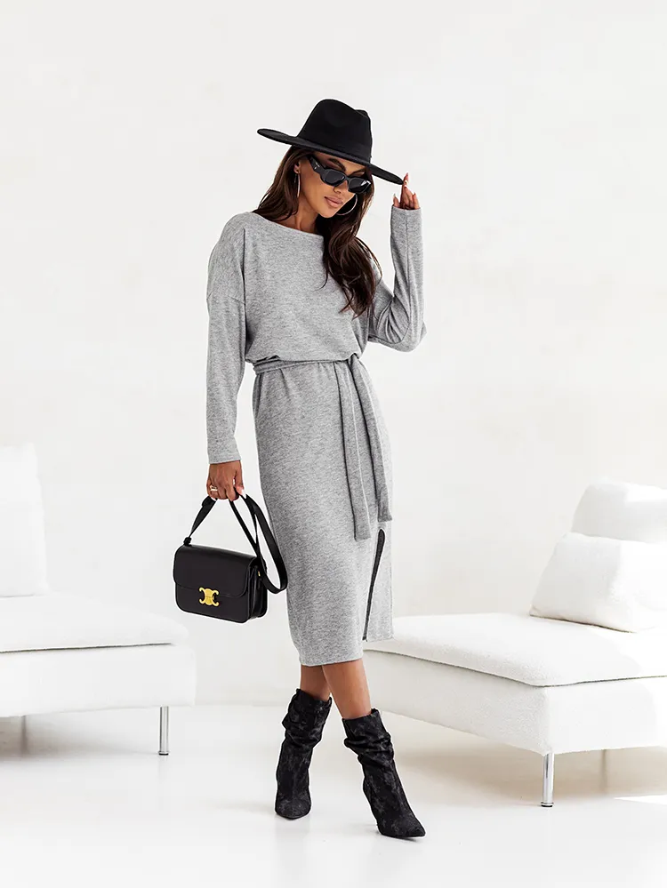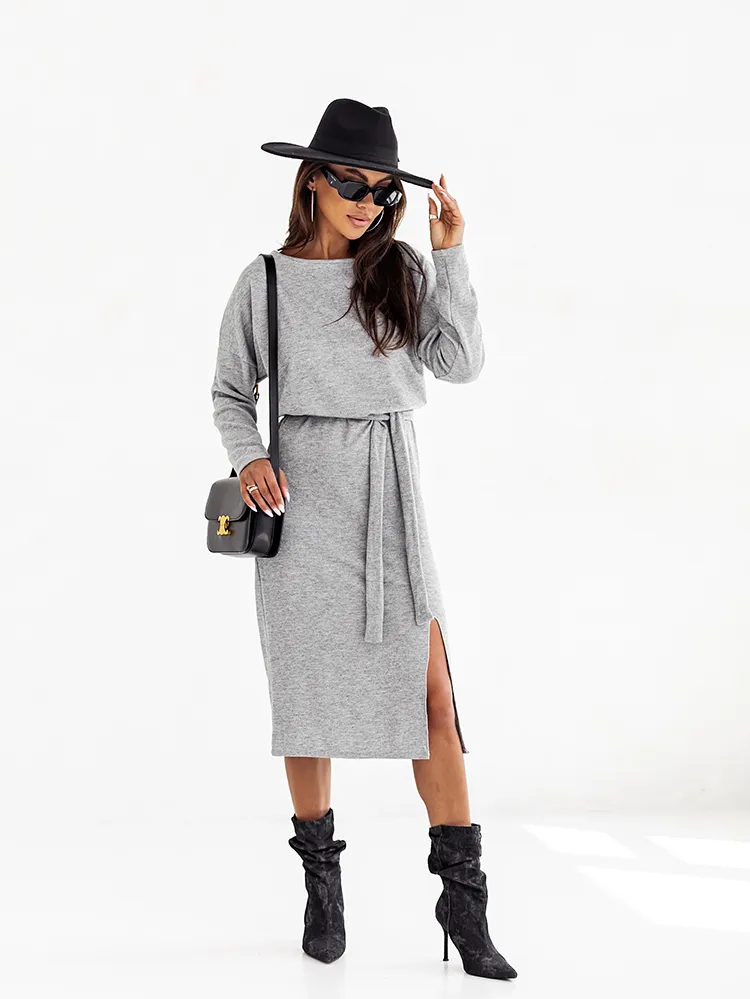 - Rochie midi pentru femei din material plăcut, cu mâneci lungi și decolteu rotund. Modelul are o curea inclusă. Trebuie să o ai în garderoba ta! NOTĂ: Precizia măsurătorilor (+/-) 1 cm. Dimensiunile se măsoară plat.