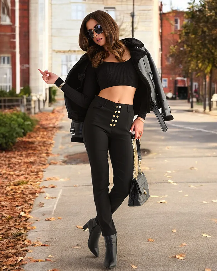 - Pantaloni teggings atemporali pentru femei, realizați din material elastic. Modelul are talie înaltă, talie elastică și 4 buzunare glisante pe față. Perfect pentru purtarea de zi cu zi!
