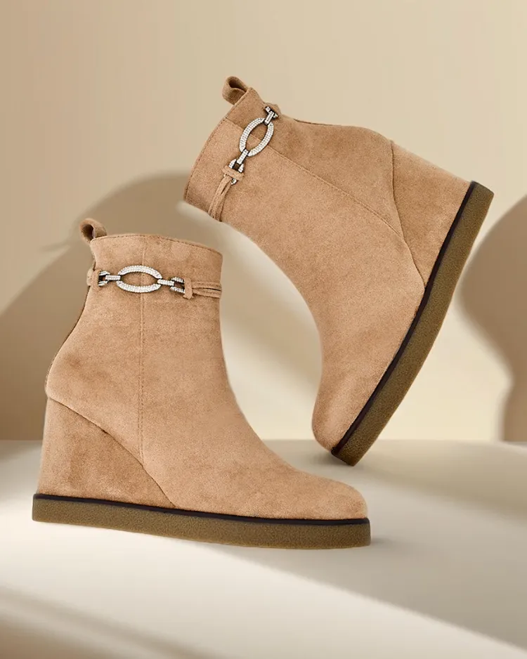 - Cizme elegante de damă pe toc, confecționate din eco-suede. Încălțăminte umplută cu blană pe interior. O alegere perfectă pentru toamnă!