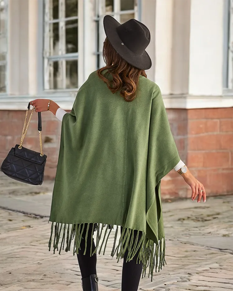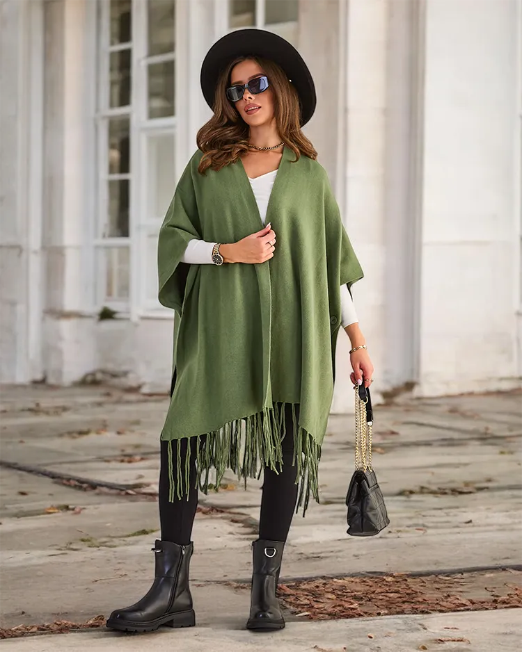 - Poncho elegant pentru femei cu ciucuri decorativi. Material moale, căldură și stil într-unul singur. Perfect pentru orice styling. Disponibil în diferite culori.