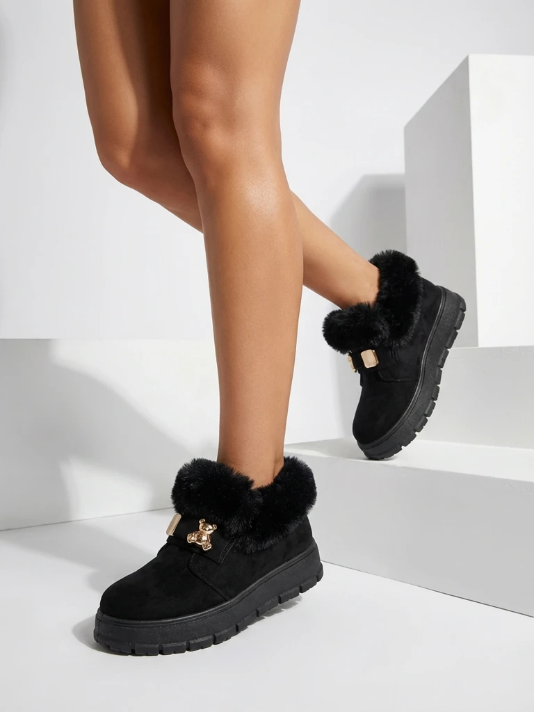 - Cizme de zăpadă cu platformă pentru femei grozave pentru iarnă. Partea superioară este realizată din piele ecologică de căprioară, mijlocul este izolat cu blană. Încălțămintea are un decor subtil pe partea superioară. Baza perfectă pentru iarnă!