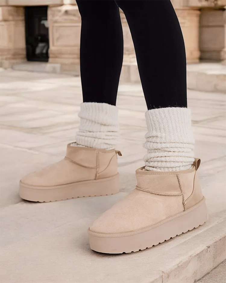• Excelenți cizme de iarnă pentru femei pe o platformă. Partea superioară este fabricată din piele eco-suede, căptușită cu blană. Bază perfectă pentru iarnă!