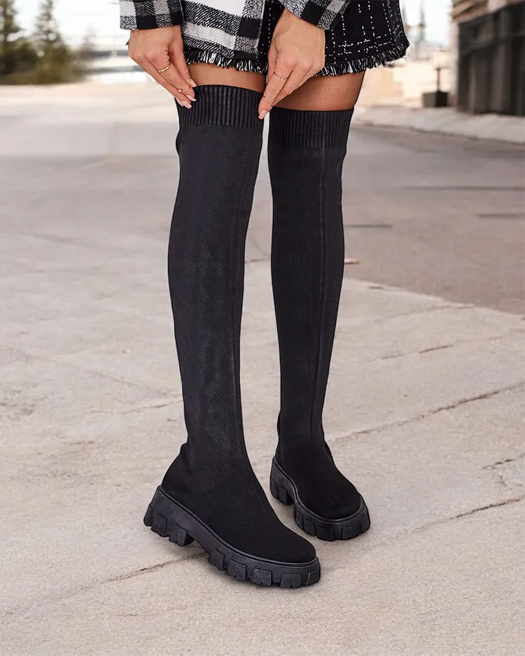 • Cizme elegante cu platforma pentru femei. Partea superioară este fabricată din material textil flexibil, cu un căptușeală textilă în interior. Model slip-on. Perfecte pentru ținutele de toamnă de zi cu zi!