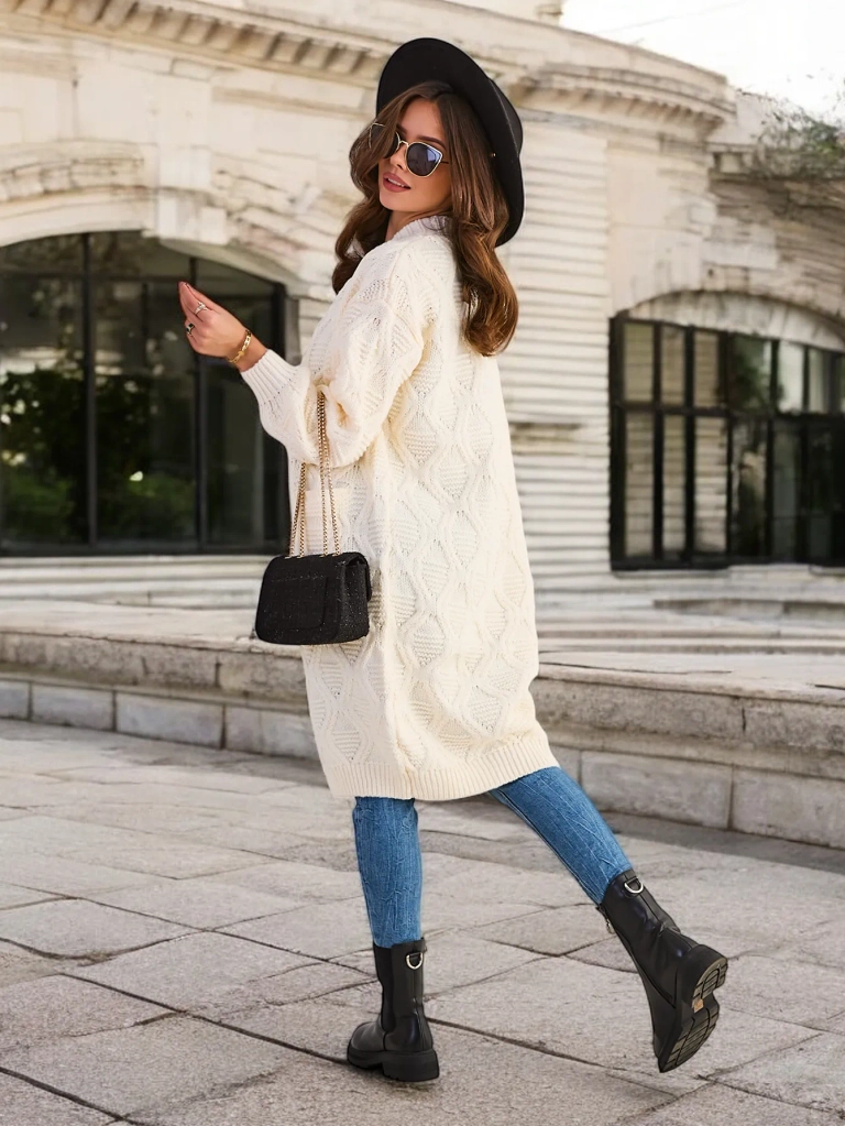 • Cardigan tricotat frumos pentru femei, realizat din material tricotat placut. Cardigan fara inchidere si fara gluga. O aditie indispensabila garderobei tale pentru a completa stilurile de toamna! NOTĂ: Precizie de masurare (+/-) 1 cm.