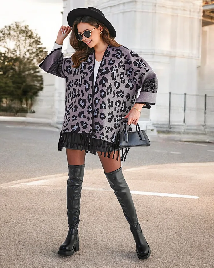 - Poncho elegant de damă cu imprimeu decorativ și franjuri. Material moale, căldură și stil în același timp. Perfect pentru orice ținută. Disponibil în diferite culori.