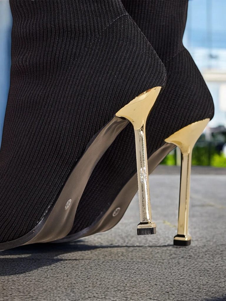 - Ghete elegante pe glezna cu toc stiletto, fabricate din material elastic, încălțăminte fără șireturi. Modelul are vârful pătrat. Ghete ideale pentru outfiturile de toamnă!