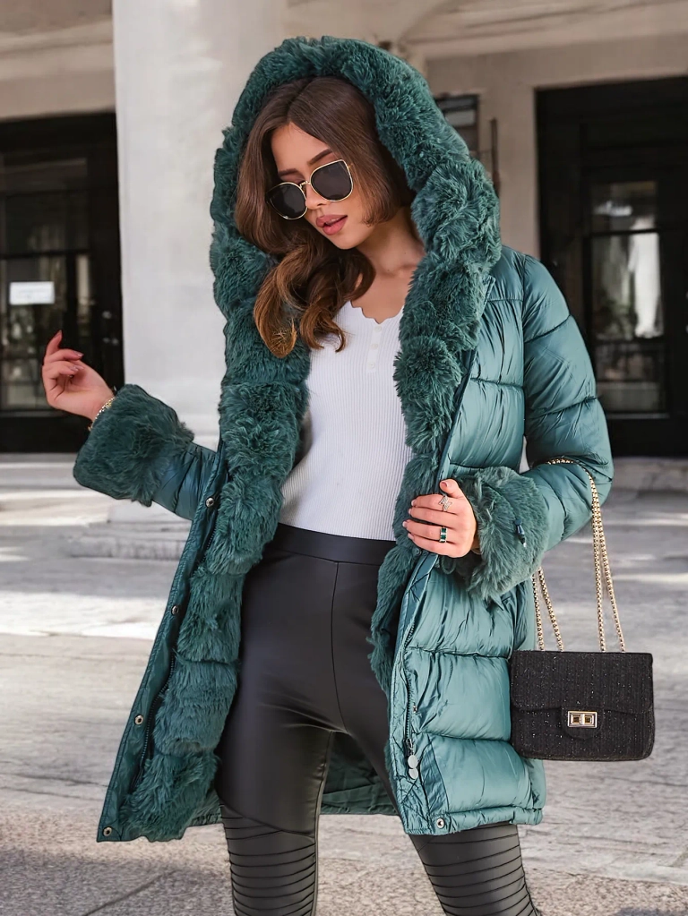 • Sacou groas pentru iarna pentru femei cu o capota si blana detasabila. Modelul este inchis cu fermoar si nasturi, are 2 buzunare si cordon pentru a accentua talia. Ideal pentru zilele mai racoroase!