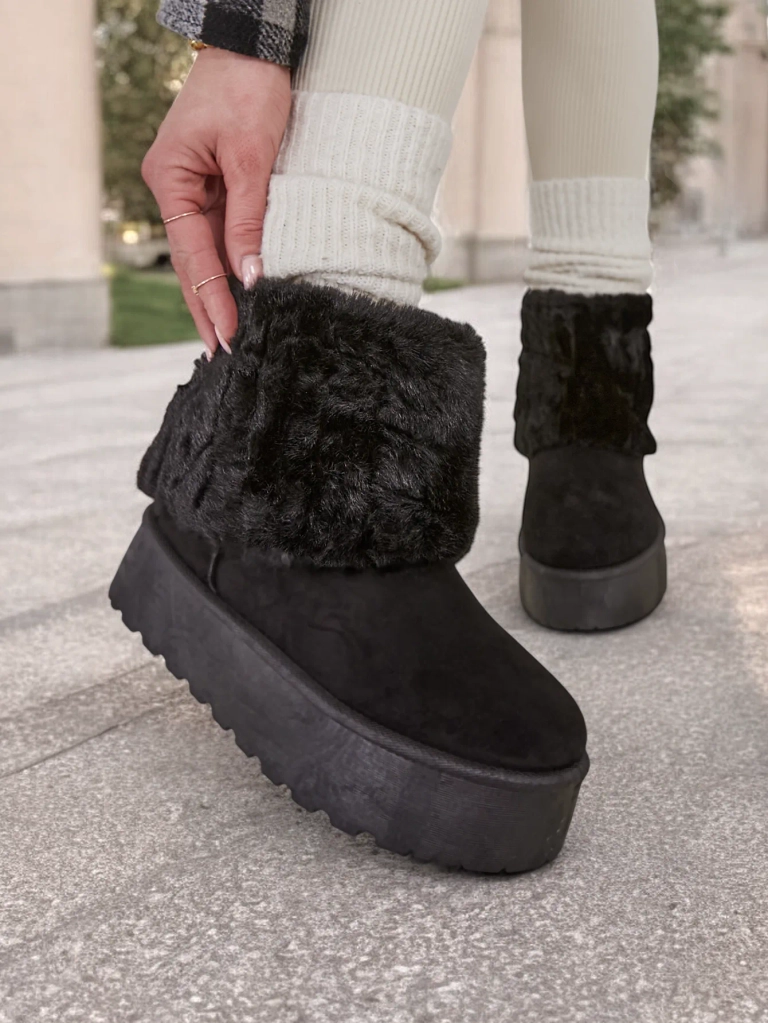 - Bocanci de zăpadă pentru femei cu un gambă fabricat dintr-o combinație de eco piele și blană plăcută. În interior, aceștia au căptușeală de blană, iar încălțările au un gambă ușor de pus. Perfecte pentru iarnă!