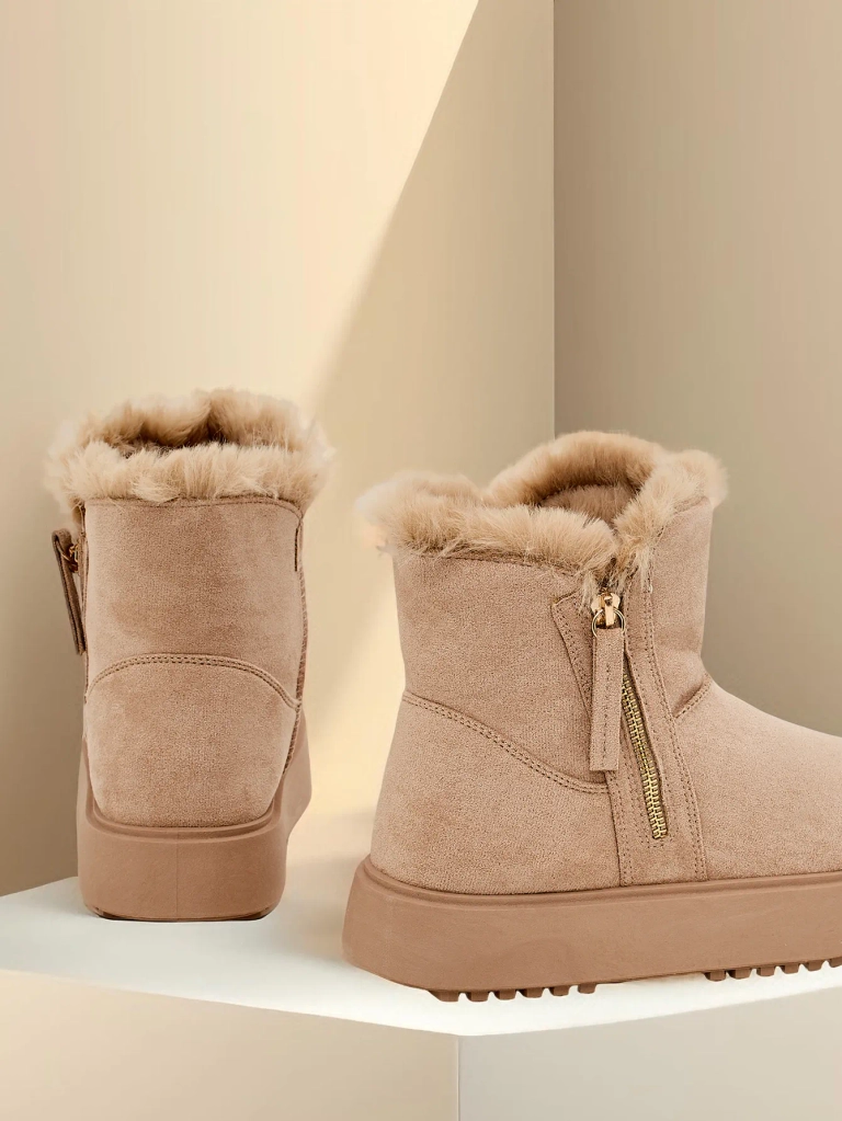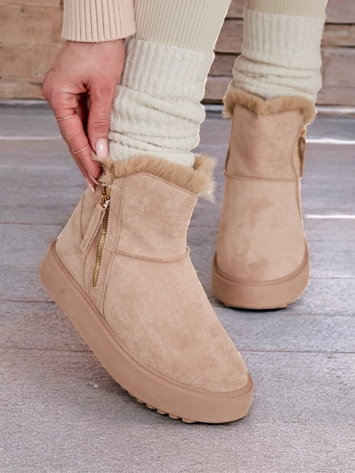 - Cizme de iarnă pentru femei fabuloase, pe o platformă. Partea de sus este făcută din piele faux de catifea, căptușită cu blană. O bază ideală pentru iarnă!