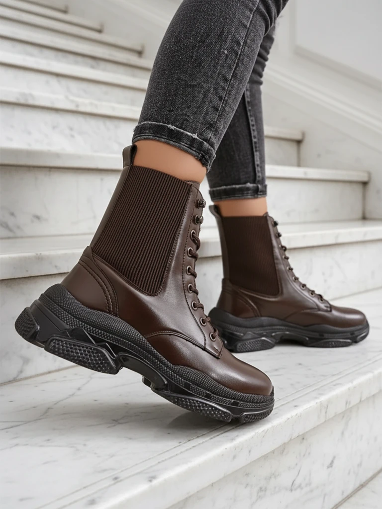 - Bocanci de muncă pentru femei sunt încălțăminte unică care combină stilul și confortul. Realizați din piele ecologică și umpluți cu blană moale. Model cu șireturi. Talpa mai groasă adaugă confort pantofilor.