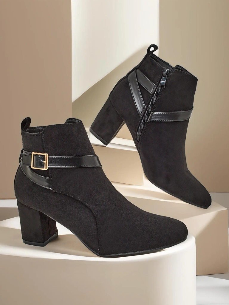 - Ghetele pentru femei sunt soluția perfectă pentru zilele mai reci. Partea superioară din eco-suede este fixată cu un fermoar, iar în interior se află o talpă căptușită cu blană. Model cu toc chunky și vârf rotund. O completare excelentă pentru ținutele ta