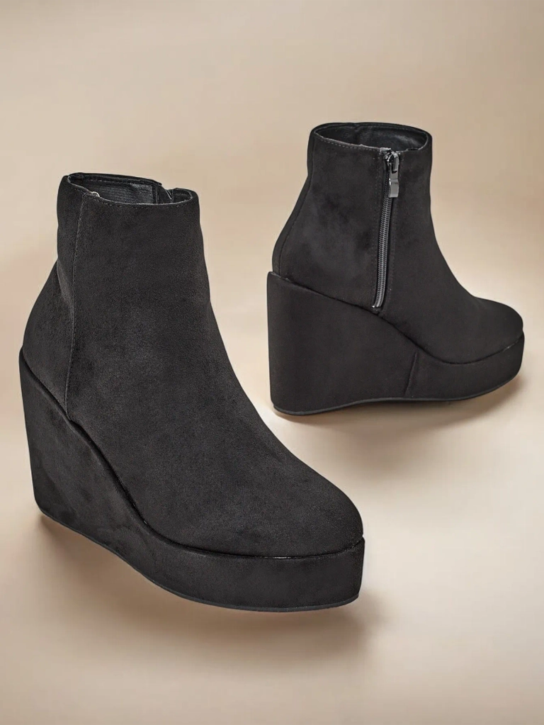 - Elegante cizme cu platformă pentru femei, realizate din eco-sued. Pantofii sunt căptușiți în interior cu blană. Alegerea perfectă pentru toamnă!