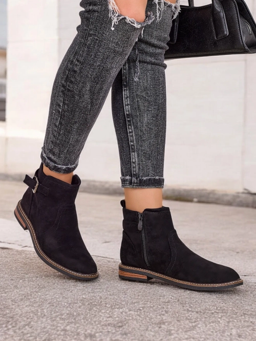 - Cizmele elegante de damă sunt soluția perfectă pentru zilele mai reci. Partea superioară din eco piele este prevăzută cu fermoar, iar în interior există o căptușeală de material textil. Model cu toc plat și vârf rotund. O mare adiție la ținutele tale casu