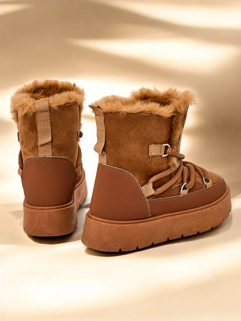 - Bocanci de zapada pentru femei cu guler din piele ecologica din piele intoarsa. Captusiti cu blana pufoasa in interior, incaltaminte cu sireturi. Perfecti pentru iarna!