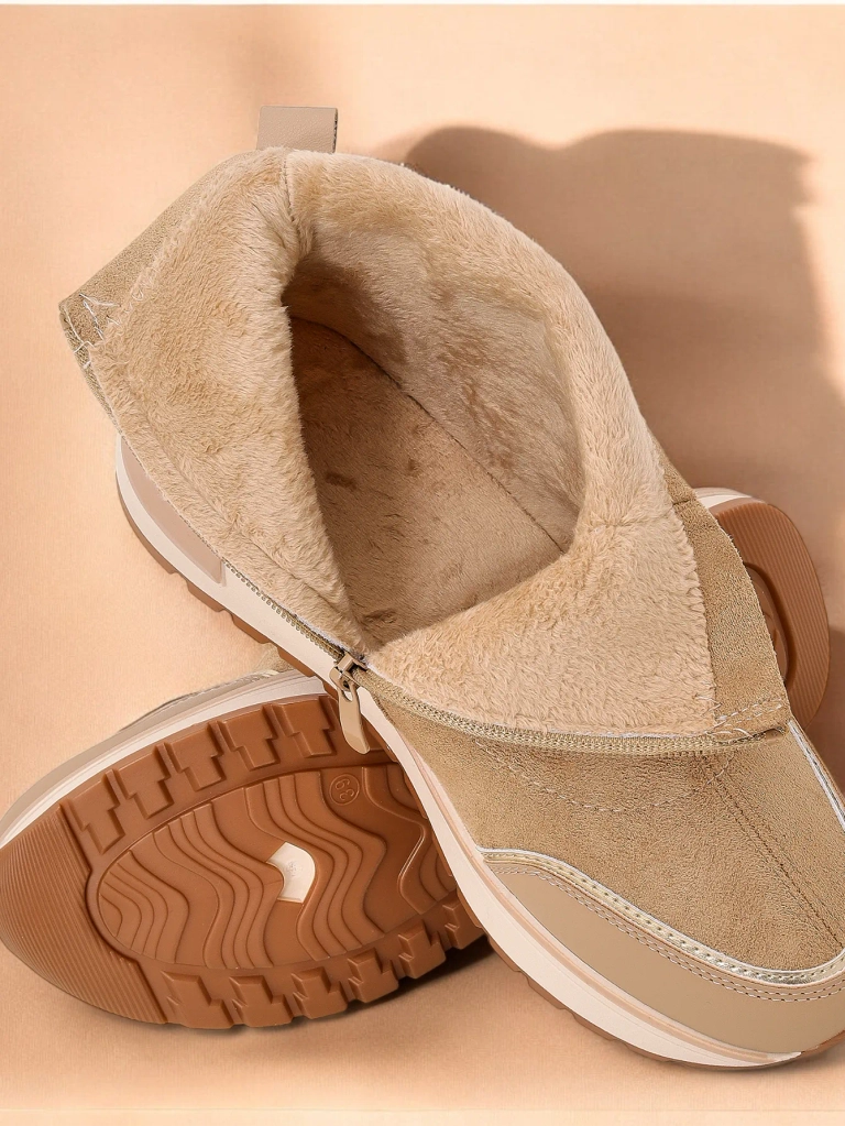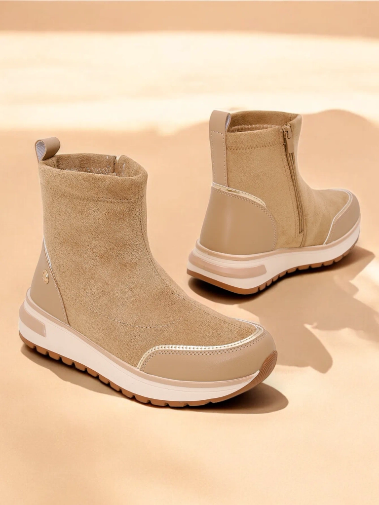 - Ghete de damă cu platformă, confecționate din piele ecologică de catifea. Ghetele sunt închise cu un fermoar, căptușite cu blană confortabilă în interior. Perfecte pentru toamnă!