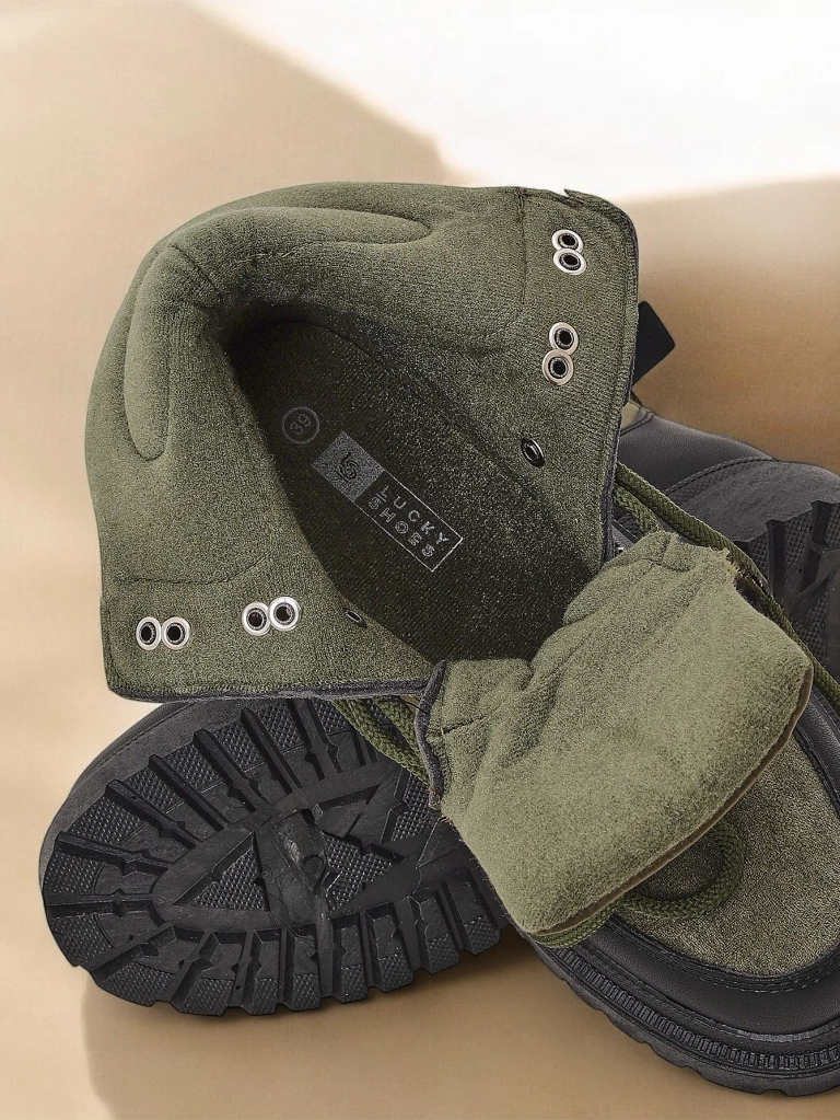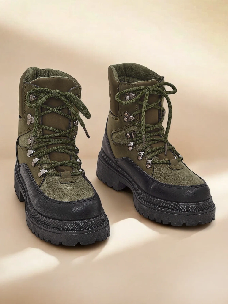 - Cizme trapper unice pentru femei, realizate dintr-o combinatie de piele ecologica, piele ecologica mata si material textil. Modelul are un varf lacat. Umplute cu spuma mai groasa si material pe interior. Incaltaminte specifica pentru vreme rea!