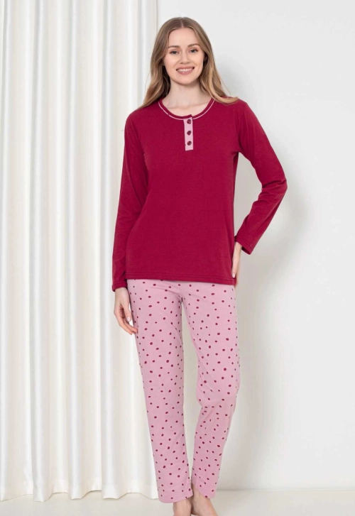 Pijama din bumbac Royalfashion pentru femei cu pantaloni cu buline
