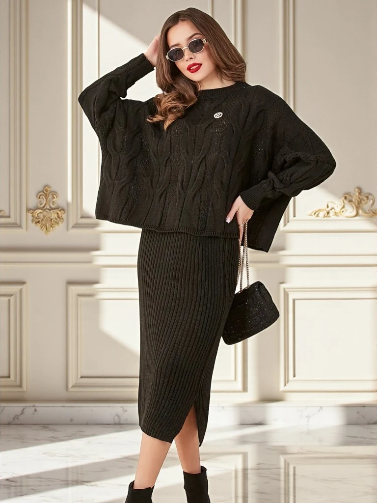 Royale Modă Set pentru femei din acril împletit cu pulover și fustă Warm&Fuzzy