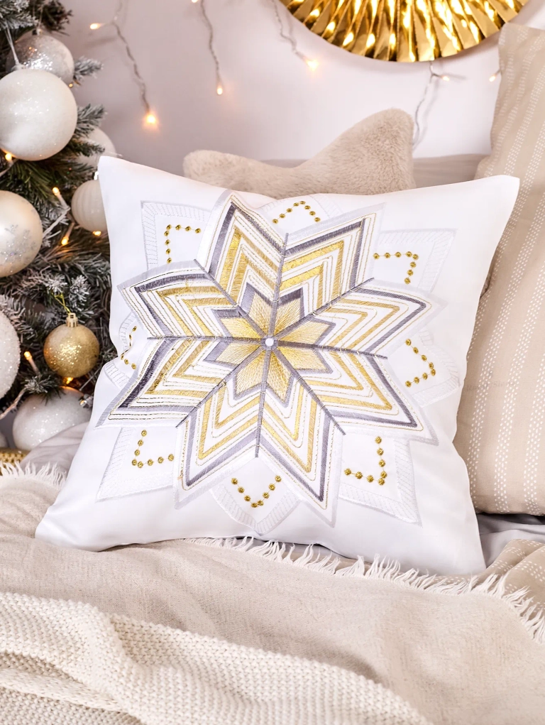 - Dacă căutați decorațiuni de Crăciun, fata noastră de pernă va fi perfectă! Produsul, care măsoară 42 cm x 42 cm, este făcut din material textil și are închidere cu fermoar.