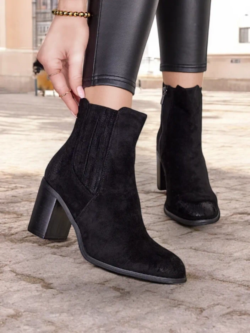 Royalfashion Botine de damă din eco-piele întoarsă, cu toc gros, Cesios