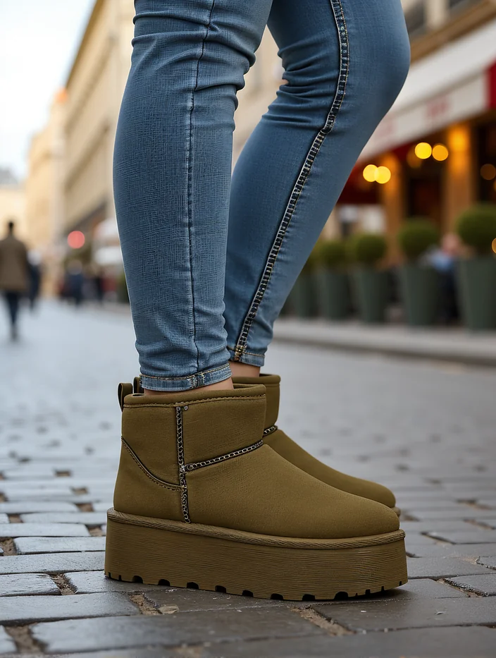 - Cizme de iarnă grozave pentru femei cu platformă. Partea superioară este realizată din piele întoarsă ecologică, iar interiorul este izolat cu blană. Fundamentul perfect pentru iarnă!
