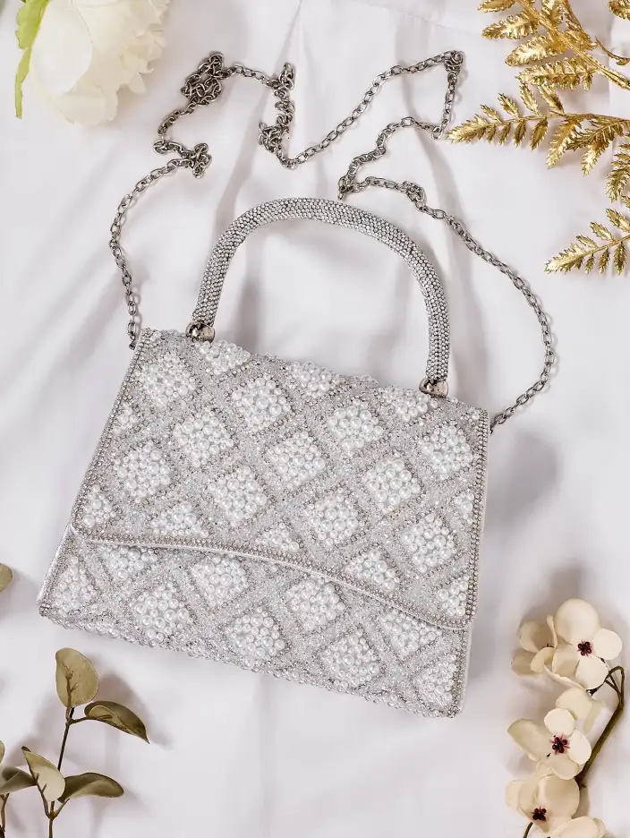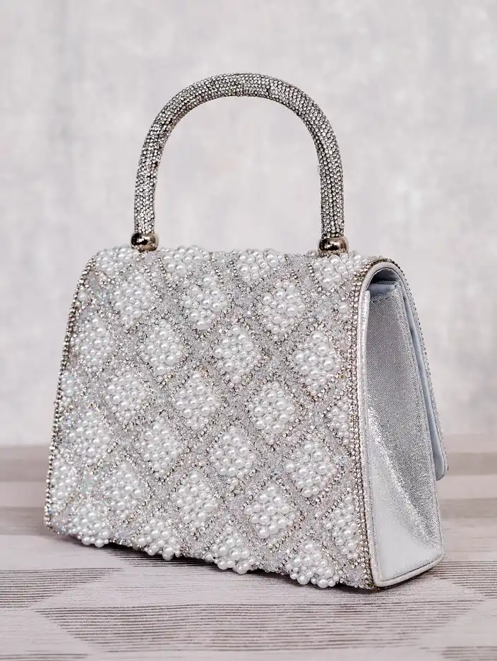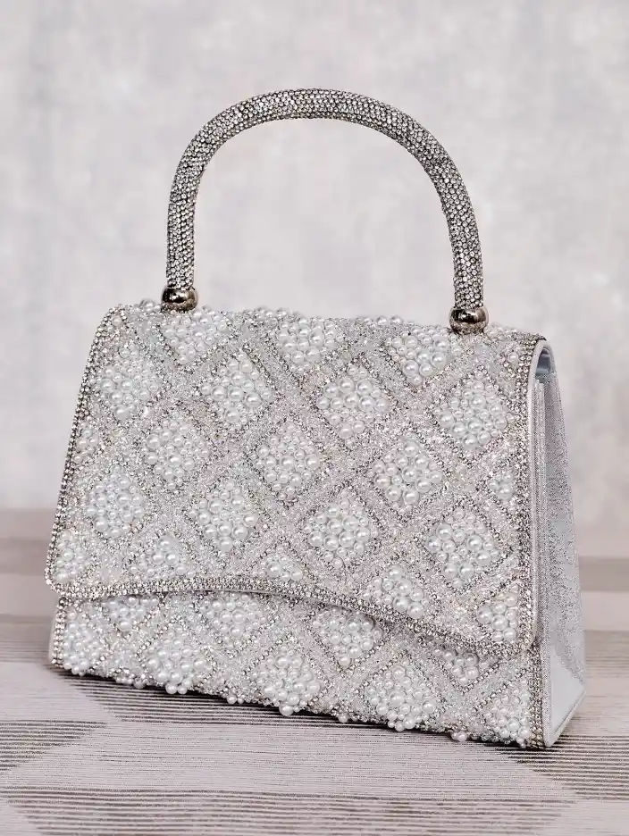 Royalfashion Mică geantă de mână pentru femei cu strasuri și perle
