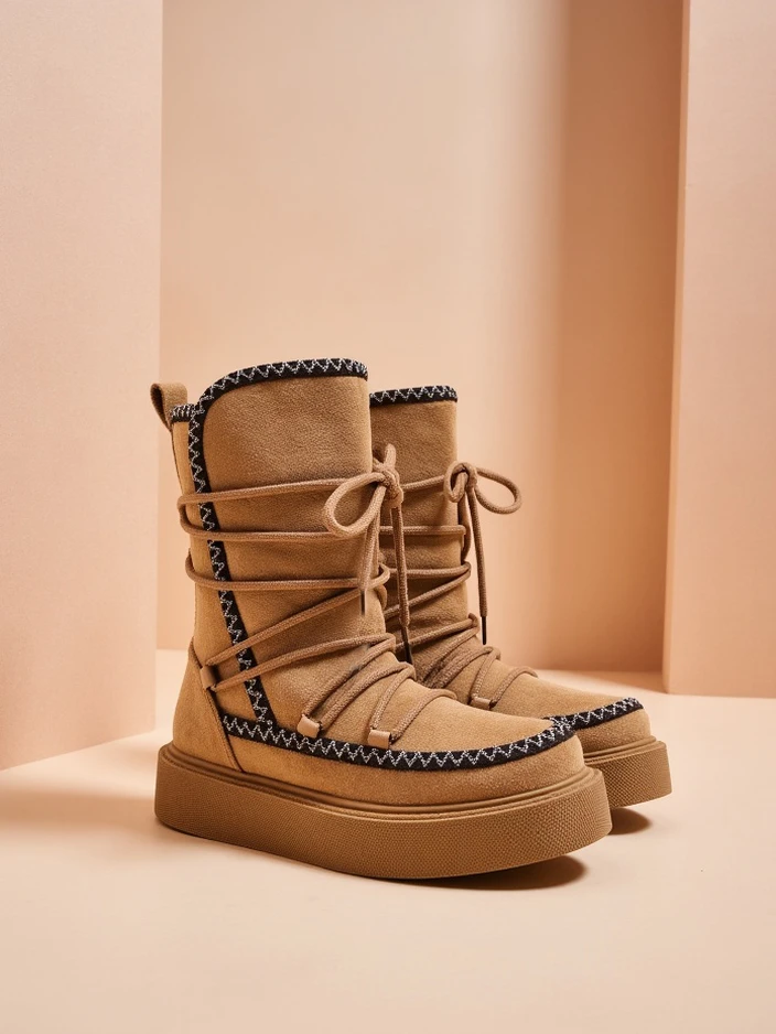 - Botine pentru femei din eco-piele de suede. Interiorul are o izolație delicată, iar încălțările sunt cu șiret. Perfecte pentru iarnă!