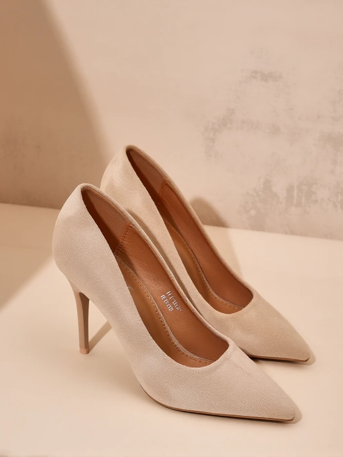 - Pantofi eleganți cu toc înalt pentru femei din piele ecologică de suede. Interiorul încălțămintei este captușit cu ecologică. Vârful ascuțit adaugă clasă!