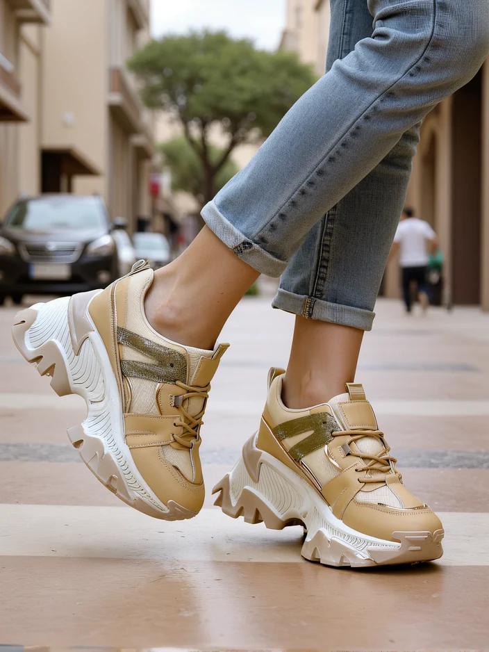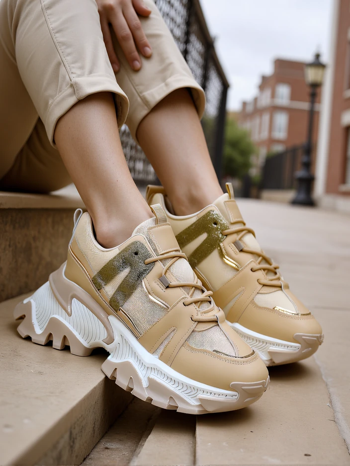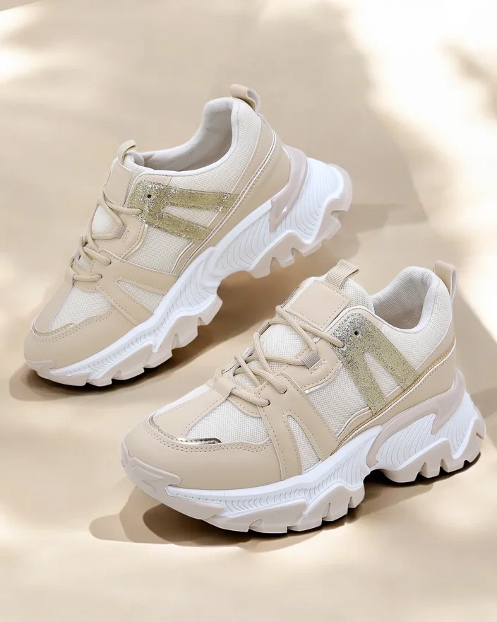 • Pantofii cu platformă pentru femei. Încălțămintea este realizată din eco-piele cu inserții sclipitoare și o branț din țesătură. O adăugare grozavă la ținutele tale casual de zi cu zi!