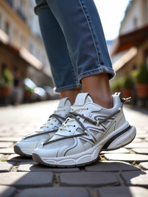 - Încălțăminte sport de tip sneaker cu talpă mai groasă. Fabricate din eco-piele și plasă cu branț din material textil. O adăugare excelentă la ținutele tale casual de zi cu zi!