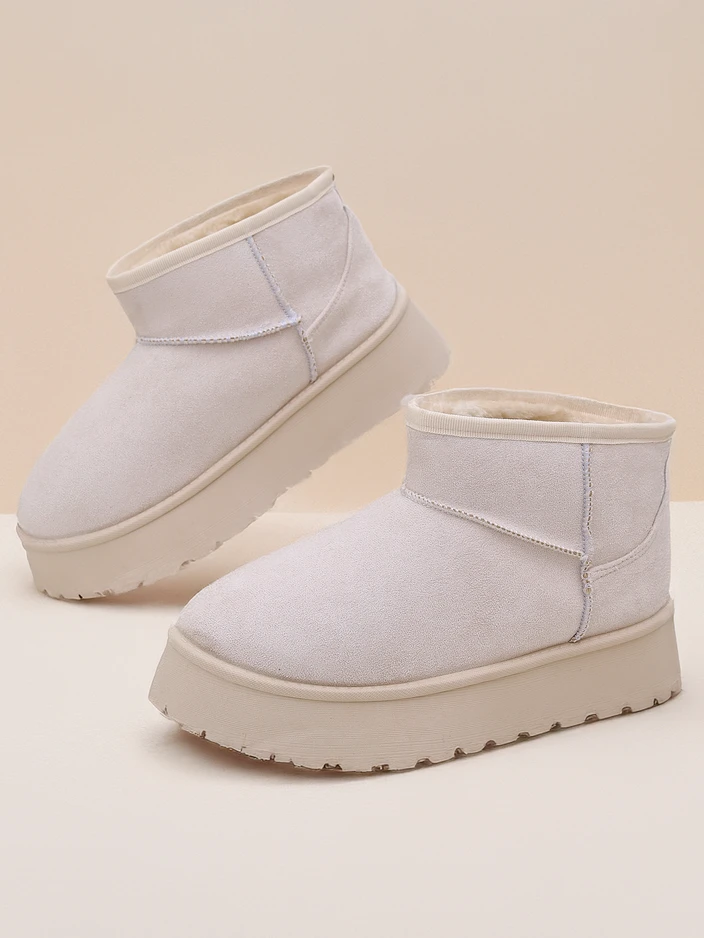 - Ghete de iarnă excelente pentru femei cu platformă. Partea superioară este din suede artificial, iar interiorul este izolat cu blană. O bază ideală pentru iarnă!