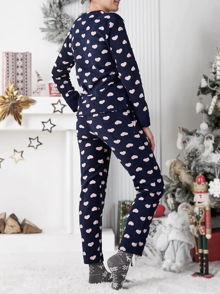 - Pijamale pentru femei din 2 piese cu mâneci lungi și picioare lungi, realizate dintr-un material asemănător polarului. Modelul este decorat cu un imprimeu. Perfecte pentru seri confortabile acasă! NOTĂ: Precizia măsurătorii (+/-) 1 cm.