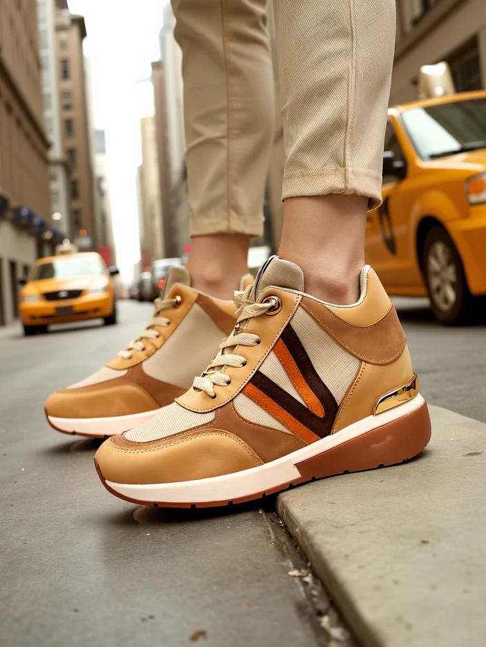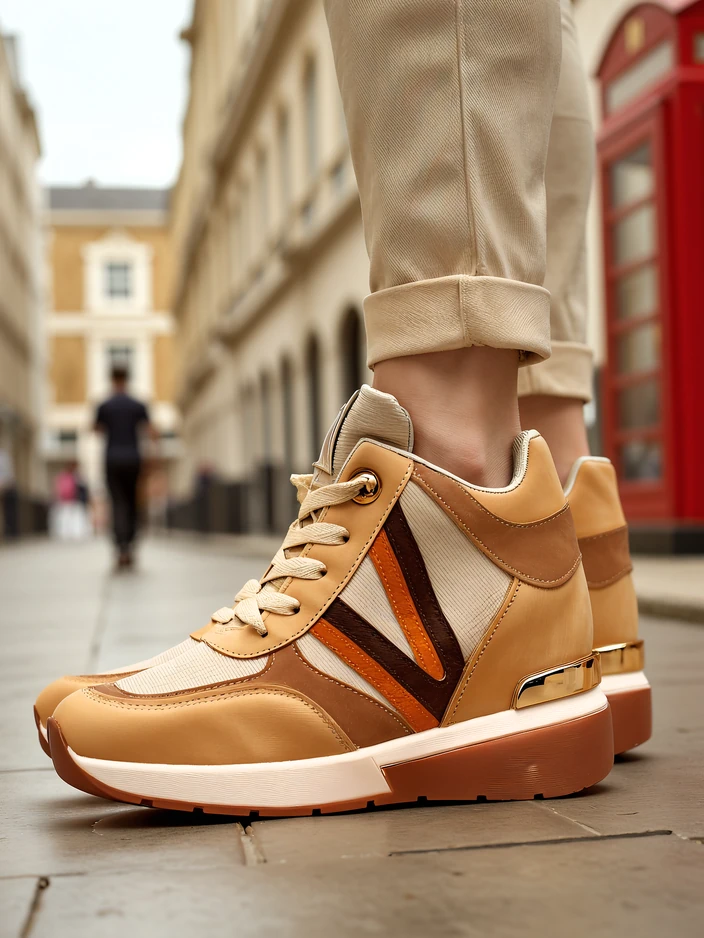 - Pantofi sport confortabili pentru femei cu toc ascuns, din ecosemne. Model cu șireturi, branț din material textil. Partea superioară elastică se va adapta ușor piciorului. Un accesoriu super stylish!
