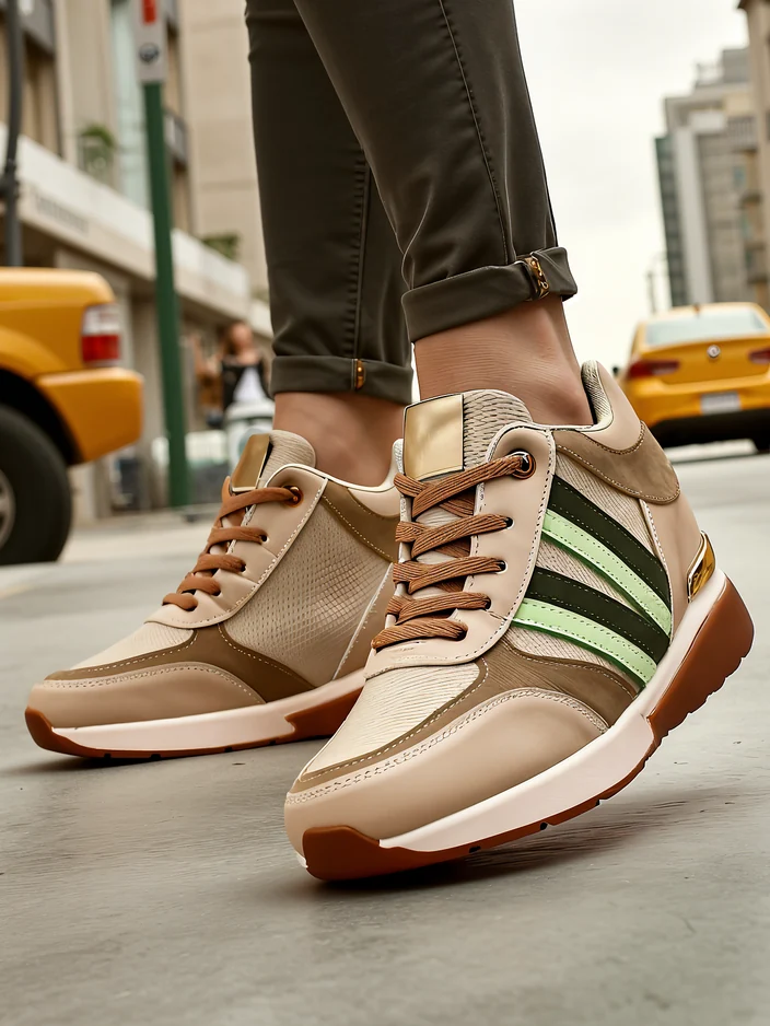 - Pantofi sport confortabili pentru femei cu toc ascuns, din ecosemne. Model cu șireturi, branț din material textil. Partea superioară elastică se va adapta ușor piciorului. Un accesoriu super stylish!