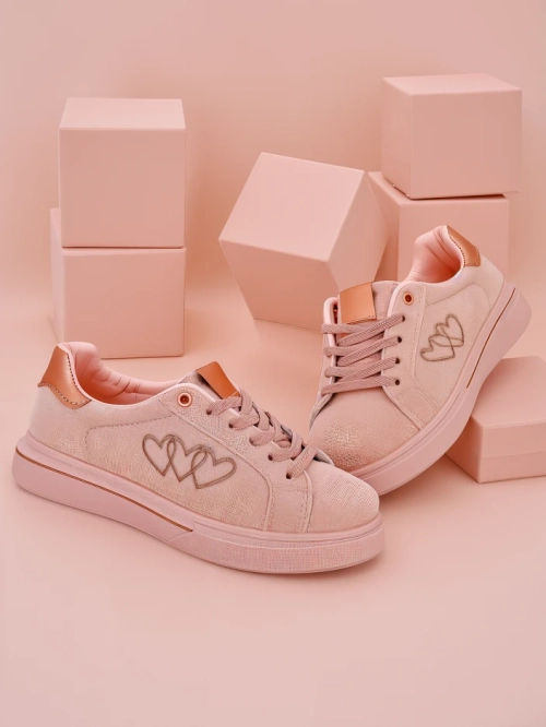 - Pantofi sport pentru femei cu talpă plată, realizați din material ecologic-suede. Modelul are o branț din eco-piele și este împodobit cu inimioare brodate. Asortează-i cu pantaloni largi și o cămașă!