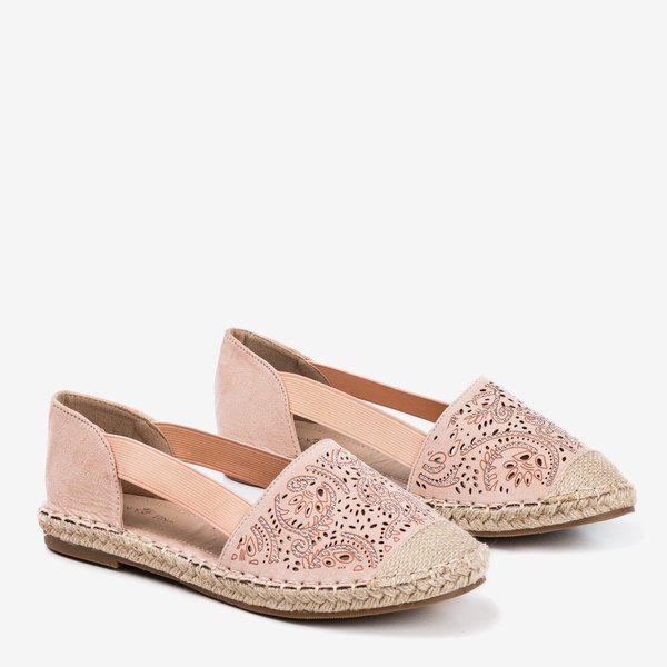• Încălțăminte confortabilă cu vârful deschis din piele ecologică de capră. Decupaje și pietre decorative pe nas. Pantofi stilizați ca espadrile. Perfect pentru utilizarea de zi cu zi. Talpa este decorată cu un șir de iută. Perfect pentru zilele mai calde!