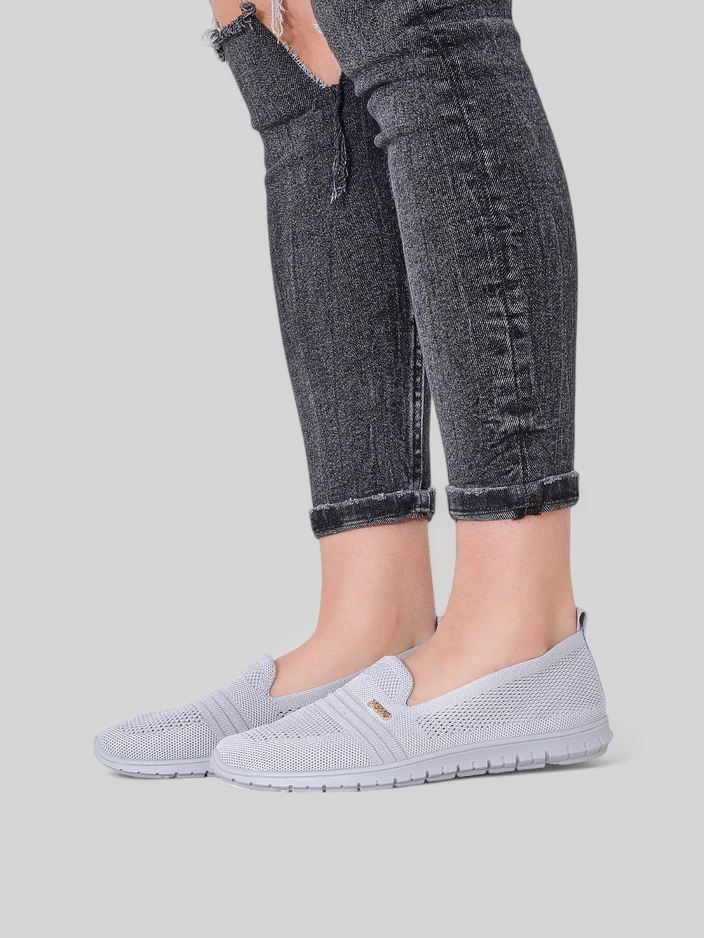 - Pantofi sportivi trendy din plasă respirabilă într-o nuanță de gri, ideal pentru utilizare zilnică.