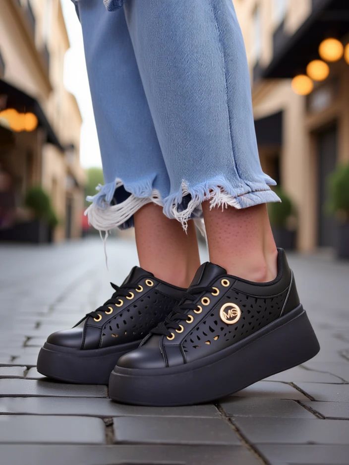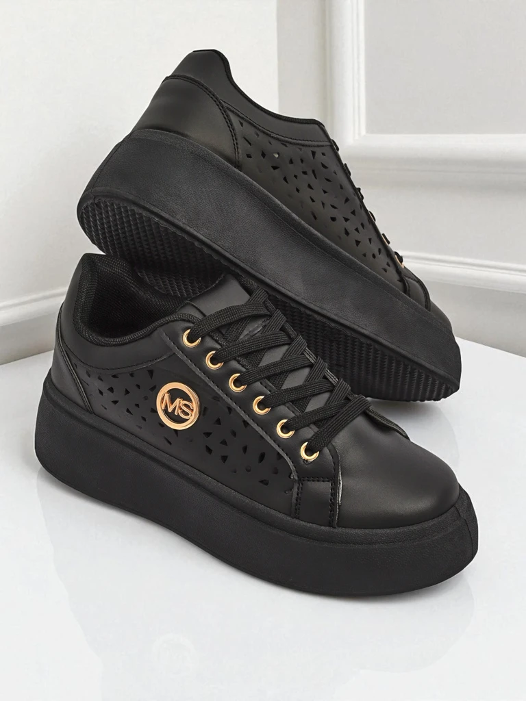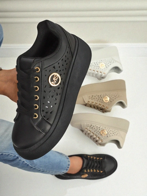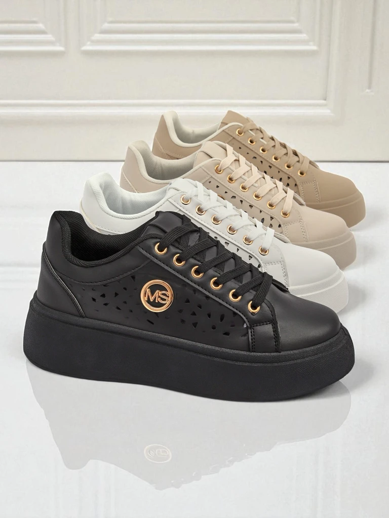 - Sneakers dama en detay ajouré en cuir écologique cu vînzare țesut pe platformă, combină confortul cu stilul la modă. Perfect pentru fiecare zi, oferă ușurință și confort, iar designul subtil adaugă eleganță fiecărei ținute.