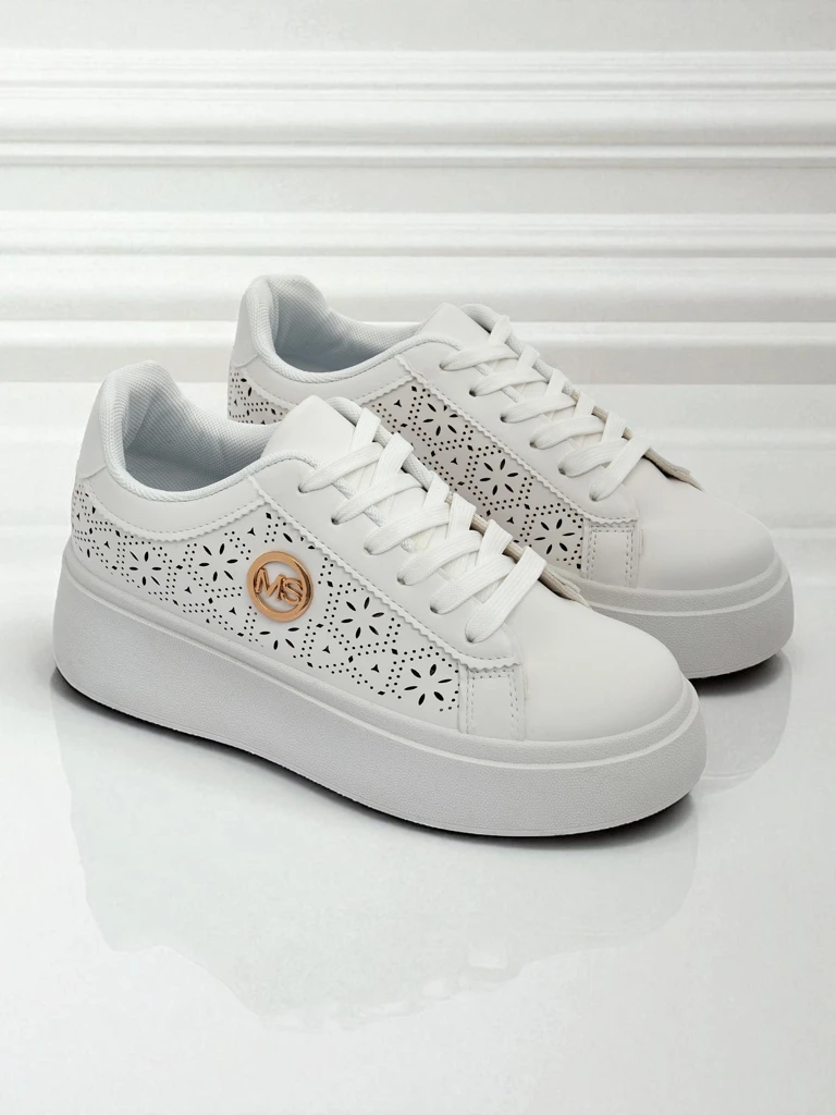 Sneakers damski Aelia Royalfashion pe platformă albi ajour ecru