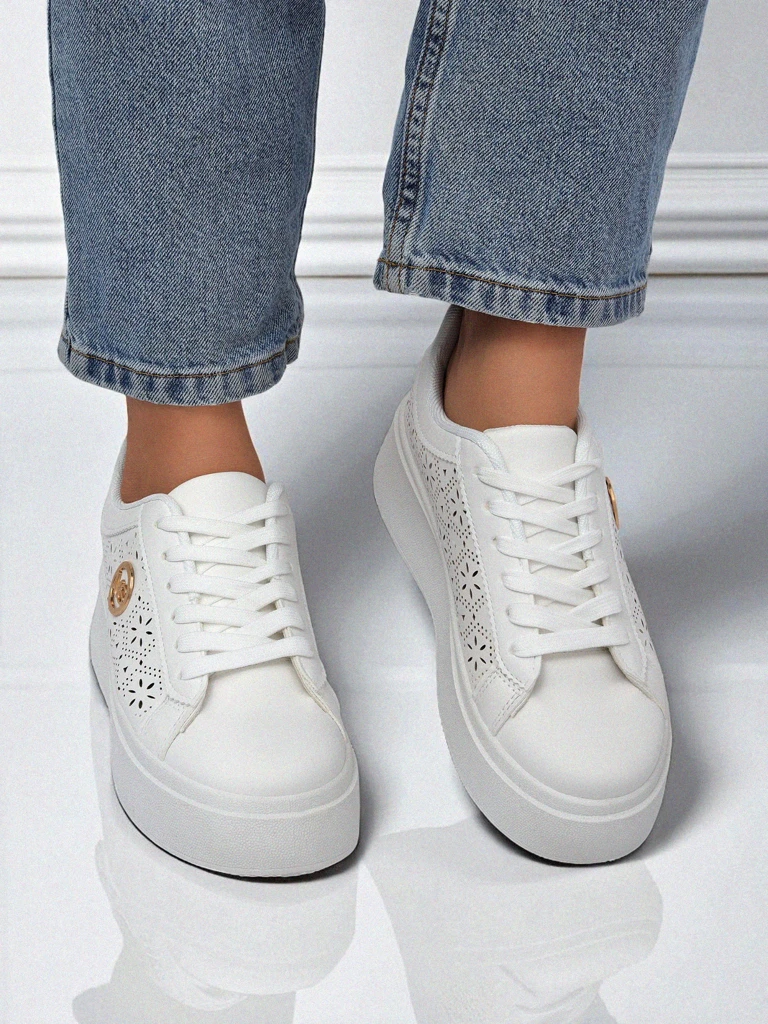 - Sneakers damski ajour cu piele ecologică și branț textil pe platformă, combinând confortul cu stilul la modă. Ideali pentru fiecare zi, oferă lejeritate și confort, iar designul subtil adaugă eleganță oricărei ținute.