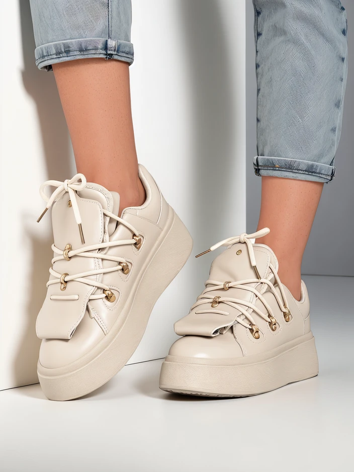 • Sneakers sport femeie pe o talpă mai groasă. Partea superioară cu șireturi din piele ecologică. Interiorul este dintr-un material plăcut. Modelul are o limbă decorativă. Perfecte pentru utilizarea de zi cu zi!